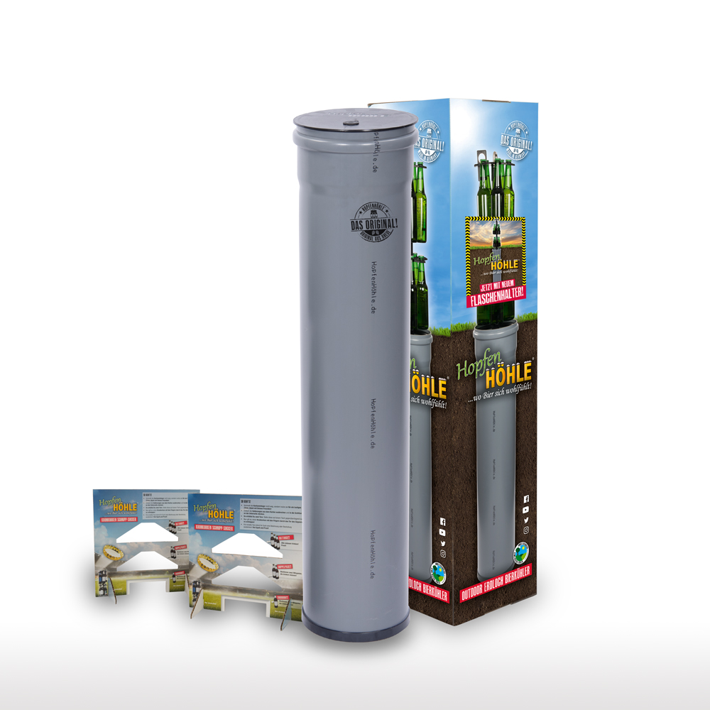 Stell Dir vor: Du bist mitten im Garten, umgeben von Freunden und Familie, die Sonne scheint und die Stimmung ist perfekt. Du öffnest den Deckel Deiner HopfenHöhle und ziehst eisgekühltes Bier direkt aus dem Boden – frischer und überraschender geht es nicht! Unsere HopfenHöhle, ist ein innovativer Flaschenkühler, er ermöglicht Dir, Getränke umweltfreundlich und ohne Strom zu kühlen. Mit einem Erdloch von nur 20 cm Durchmesser und 95 cm Tiefe verwandelt sich Dein Garten in ein cooles Paradies für Bierliebhaber.